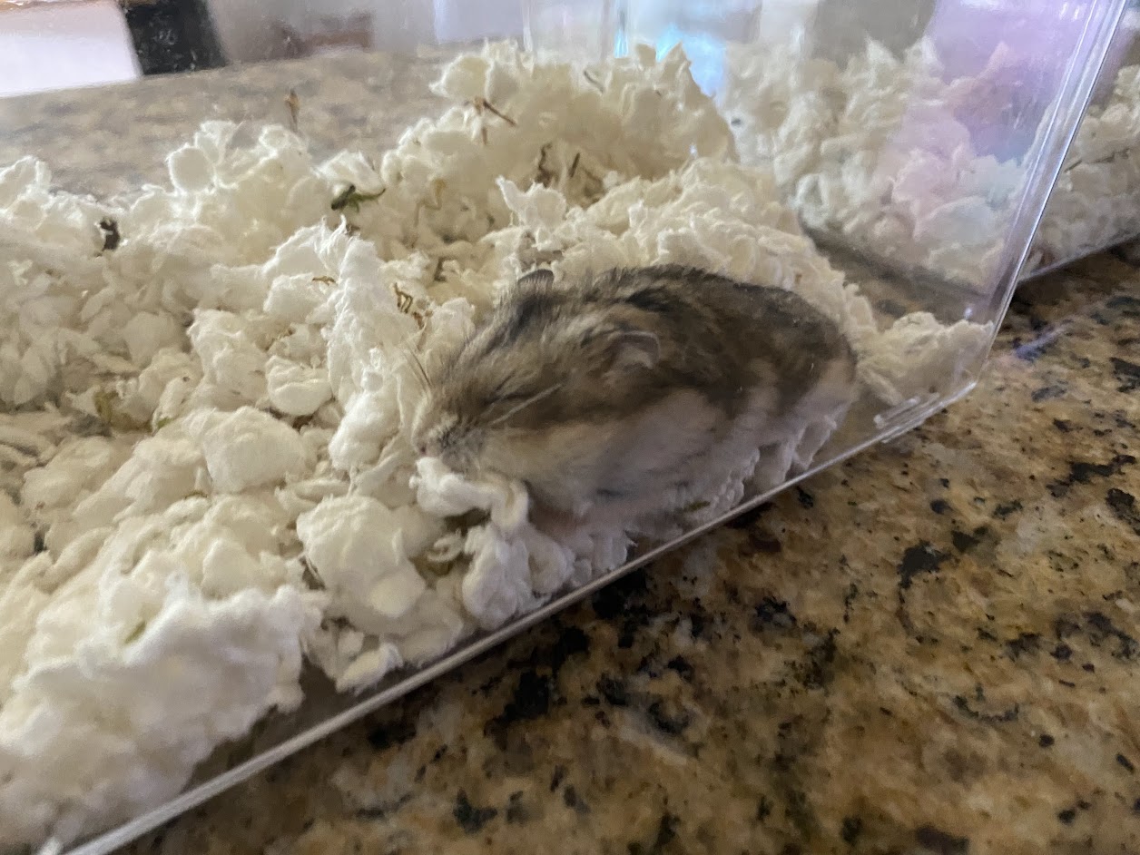 Ok fine Michelle, we hit these 100%. Maybe I'm 101%. Anyway.Right off the bat, we were both pretty excited to take in a hamster. Sure, there would be some prep, enclosures, enrichment, and food to gather. But while I was under the impression we were only getting one, the idea of two quickly became an option. After all, the food comes in such large amounts compared to what they eat, so what's one more enclosure? (we started with large, clear rubbermaid bins, WITH LOCKING LIDS just in case they were anything like their mother).